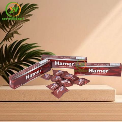 - Sản phẩm kẹo hamer này còn có thành phần cà phê giúp não bộ minh mẫn, tỉnh tảo và tập trung tốt, không gây buồn ngủ và hỗ trợ giảm chứng ngủ gật, đồng thời kéo dài thời gian quan hệ, tăng hứng thú cuộc "yêu".